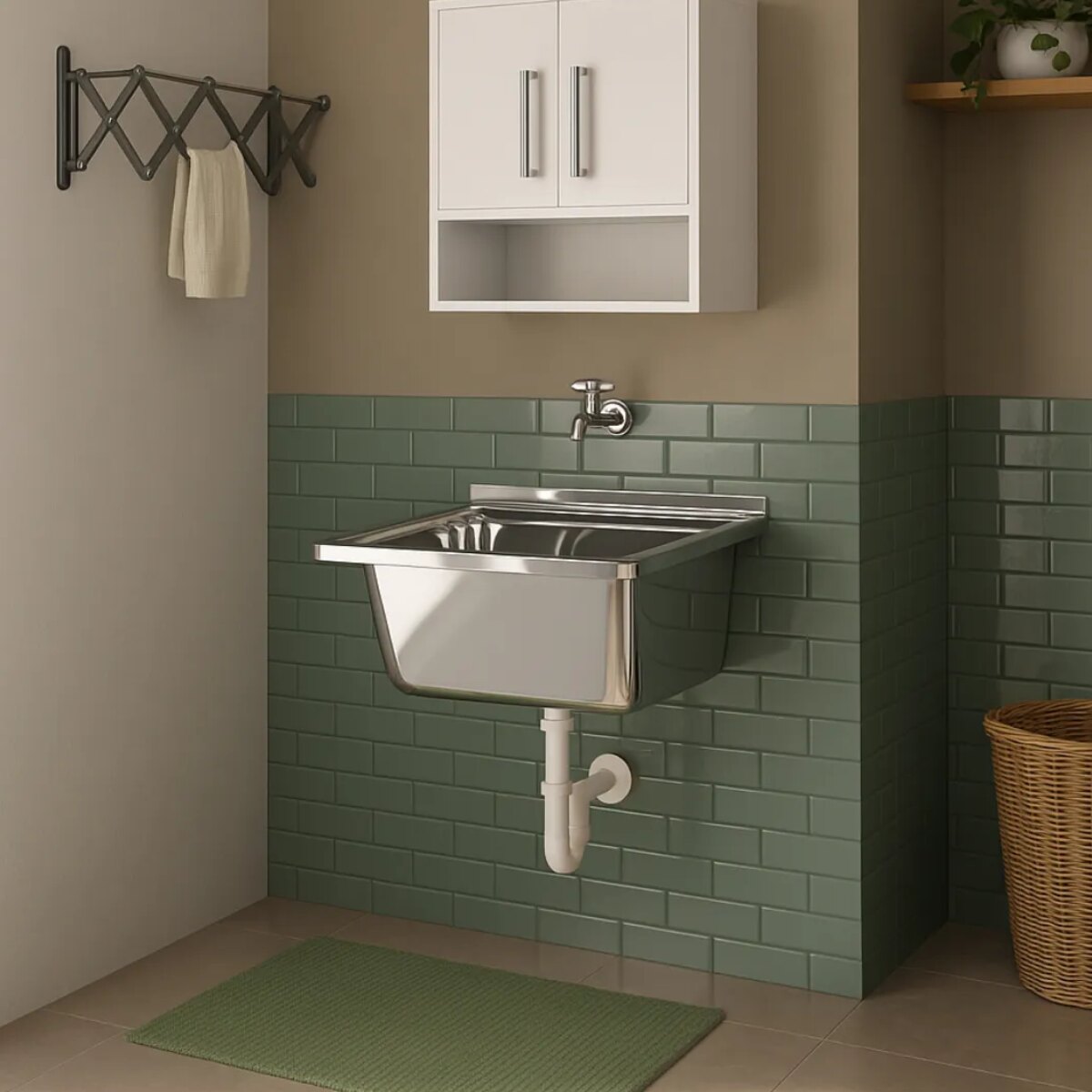 Su diseño profundo y funcional permite lavar prendas, utensilios o realizar tareas domésticas con mayor comodidad. El acero inoxidable 430 garantiza rigidez estructural, larga vida útil y un acabado pulido que aporta estética y fácil limpieza.