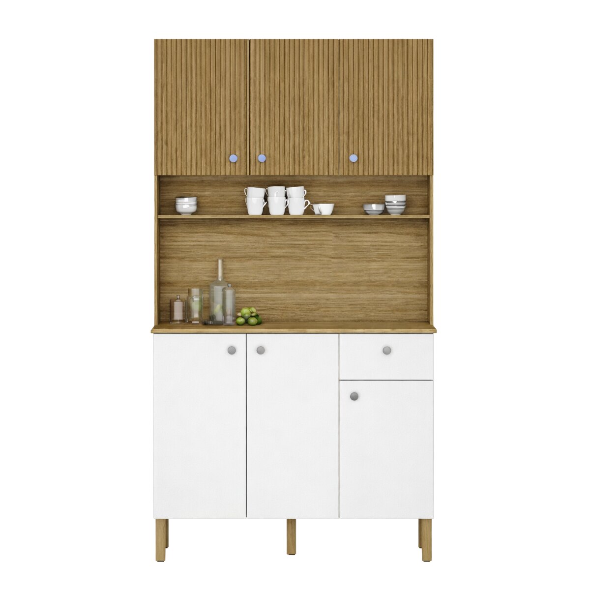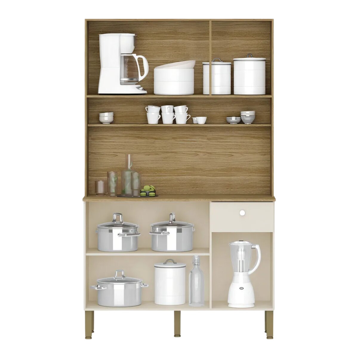 Cuenta con un diseño completo y funcional, compuesto por 6 puertas y 1 amplio cajón con correderas telescópicas 100% metálicas, que permiten una apertura suave y un uso cómodo. Además, incorpora bisagras de alta calidad, que aseguran una mayor vida útil del mueble.