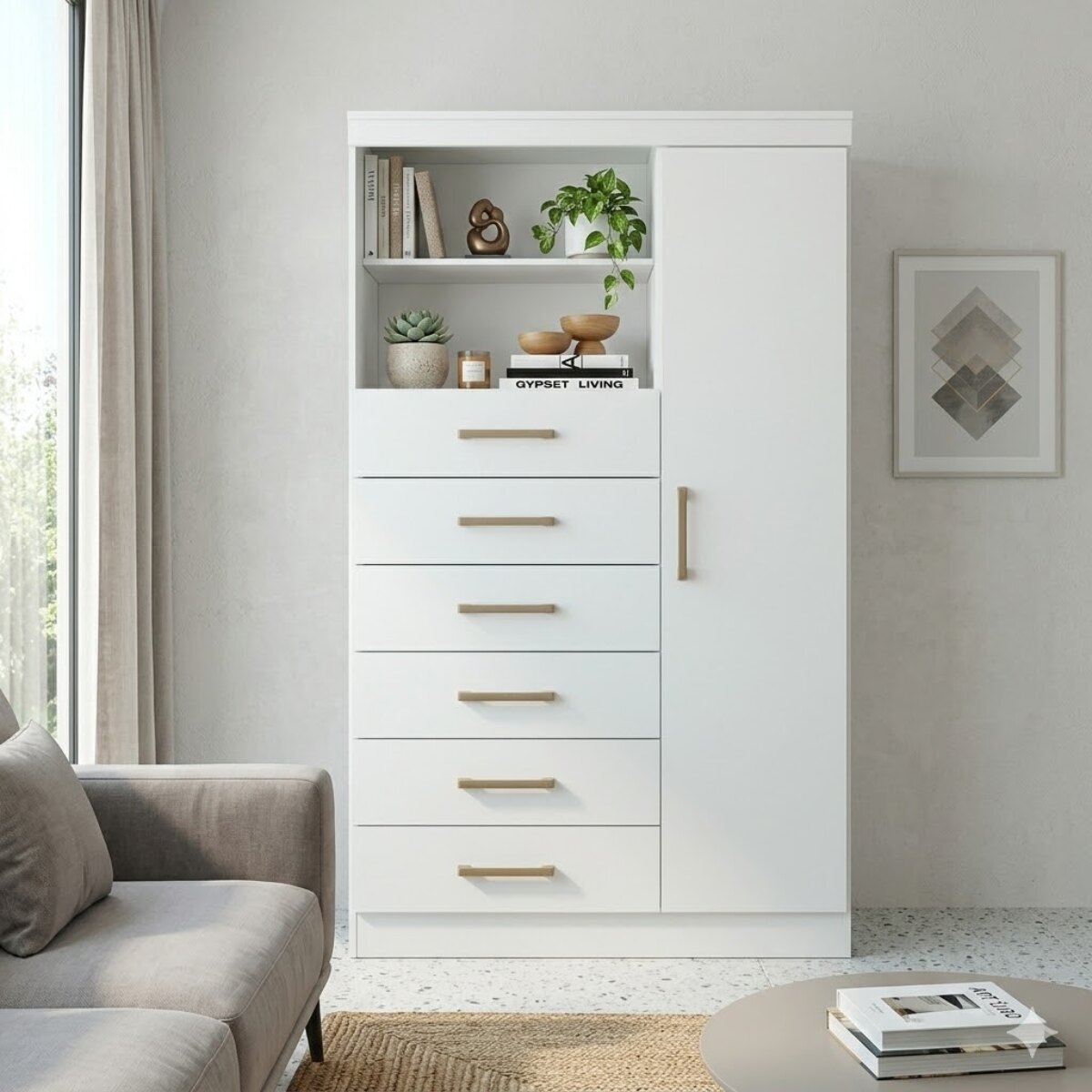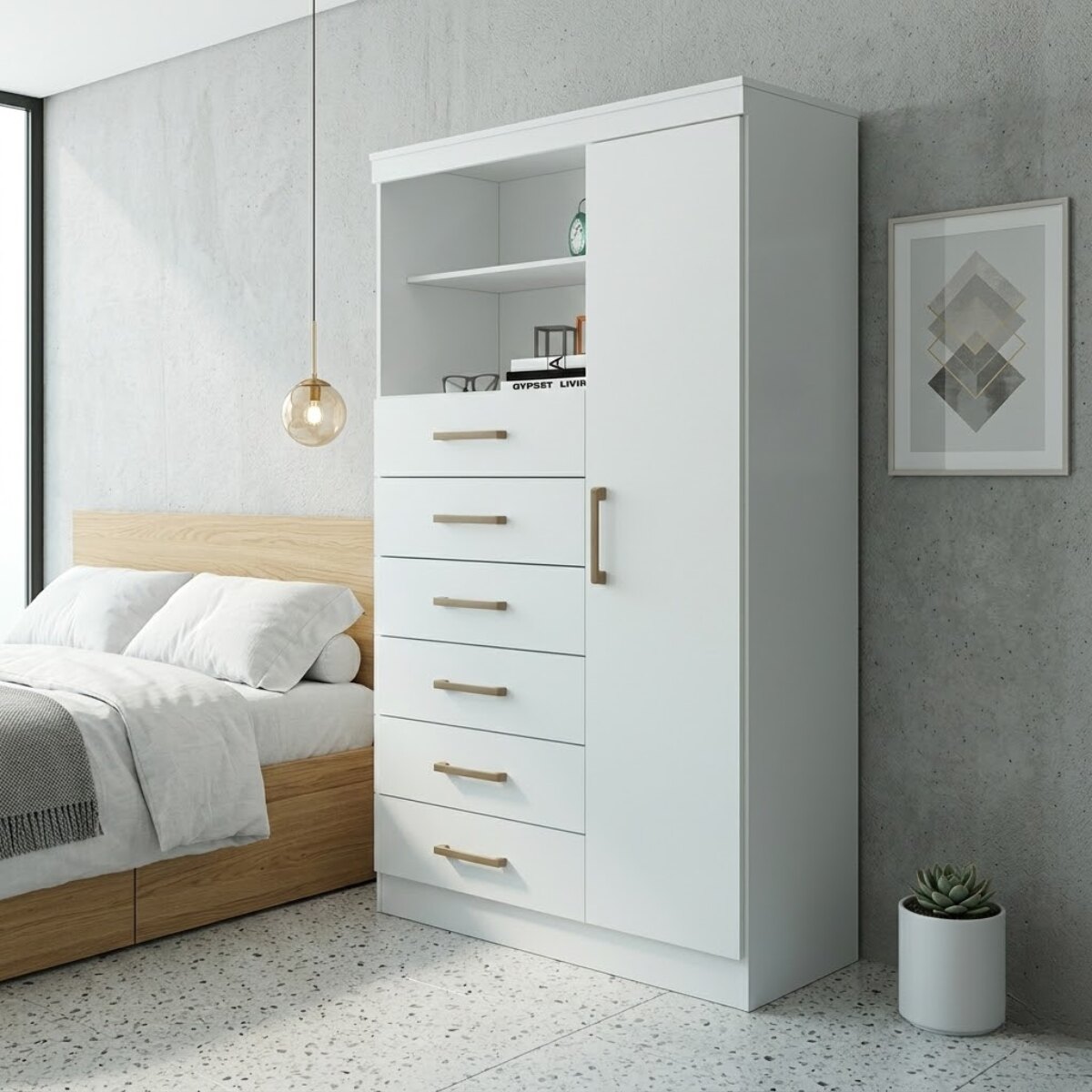 CÓMODA MARABÁ BLANCA 1 PUERTA 6 CAJONES – DISEÑO FUNCIONAL Y MODERNO