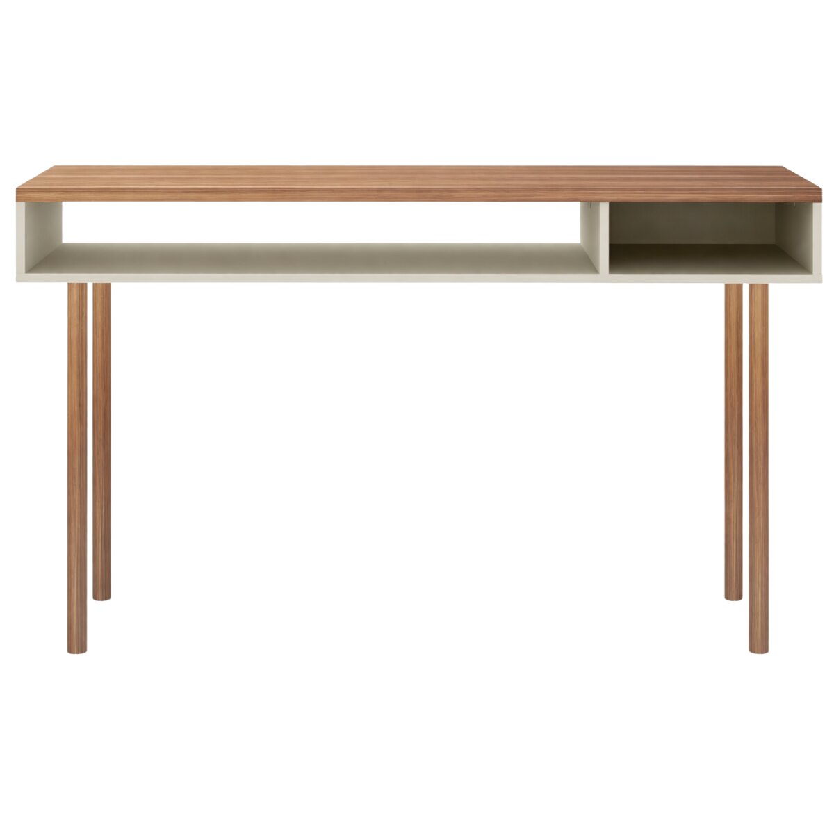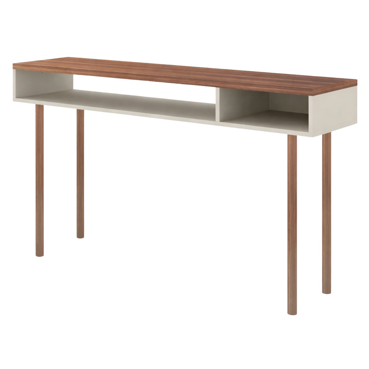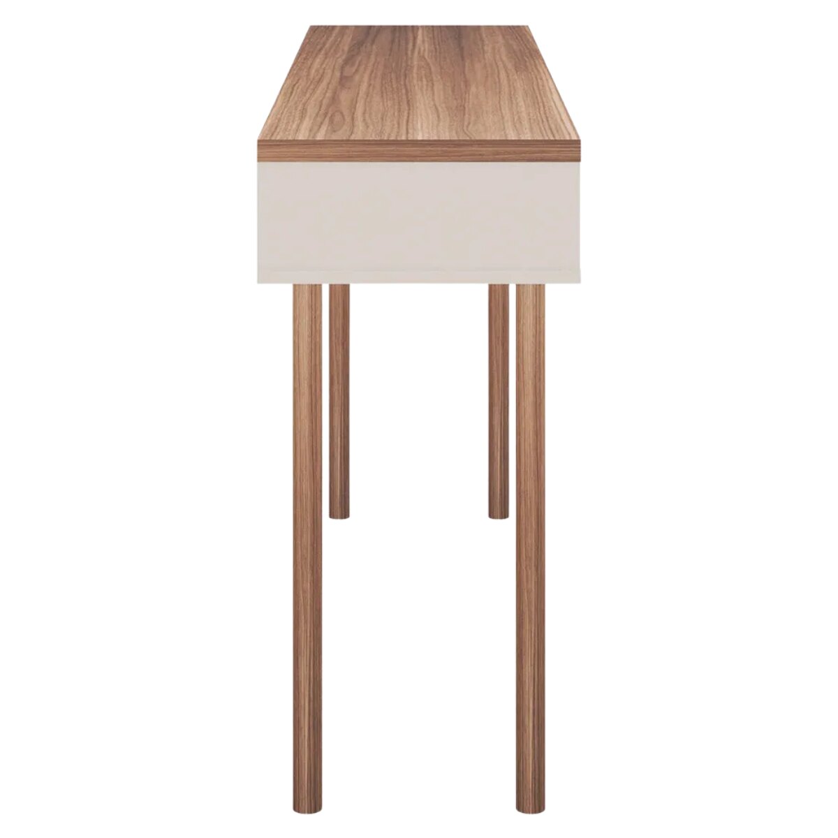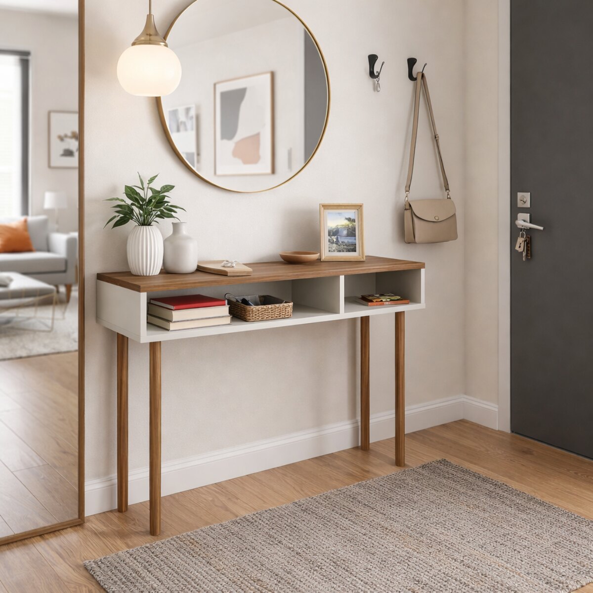 Gracias a su diseño compacto, es perfecto para utilizar como mueble recibidor en la entrada, escritorio para home office, mesa auxiliar o mueble organizador. Su estructura robusta y sus patas de madera aportan estabilidad y un estilo moderno que combina con decoraciones contemporáneas, minimalistas o escandinavas.