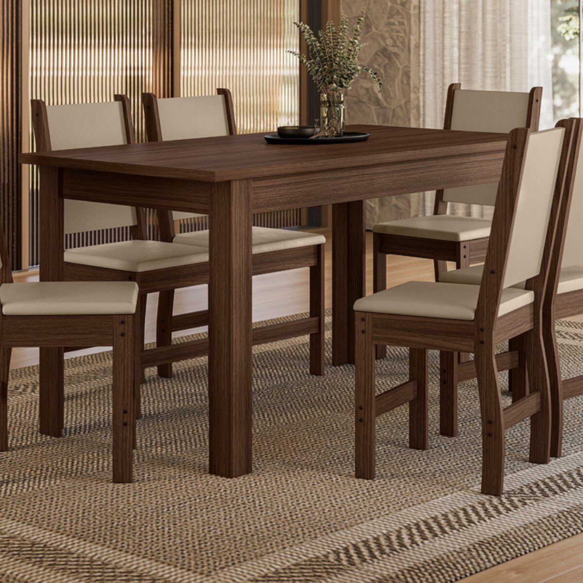 Gracias a su formato rectangular y su estructura firme con 4 patas, es una mesa ideal para compartir comidas, reuniones familiares o momentos especiales con comodidad. Su tamaño permite acomodar hasta 6 personas, convirtiéndola en una excelente opción para comedores o cocinas amplias.