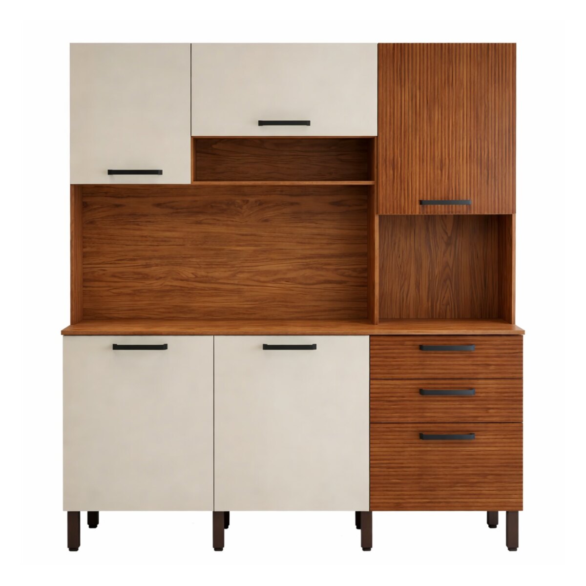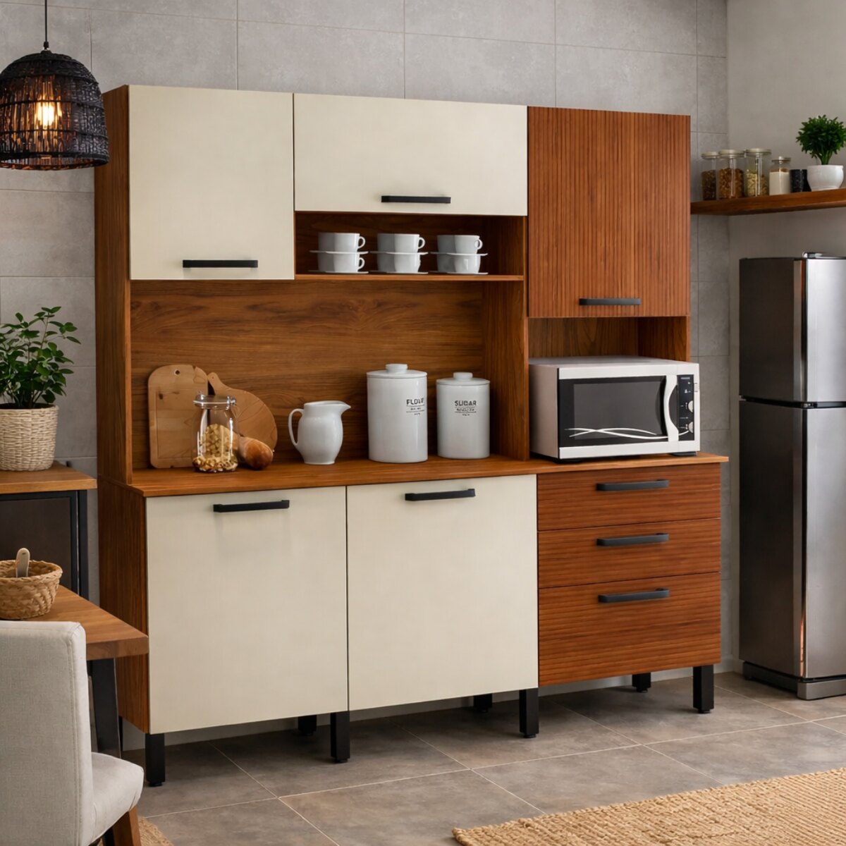 Es una excelente opción para quienes buscan renovar la cocina con un mueble compacto, elegante y con buena capacidad de guardado.