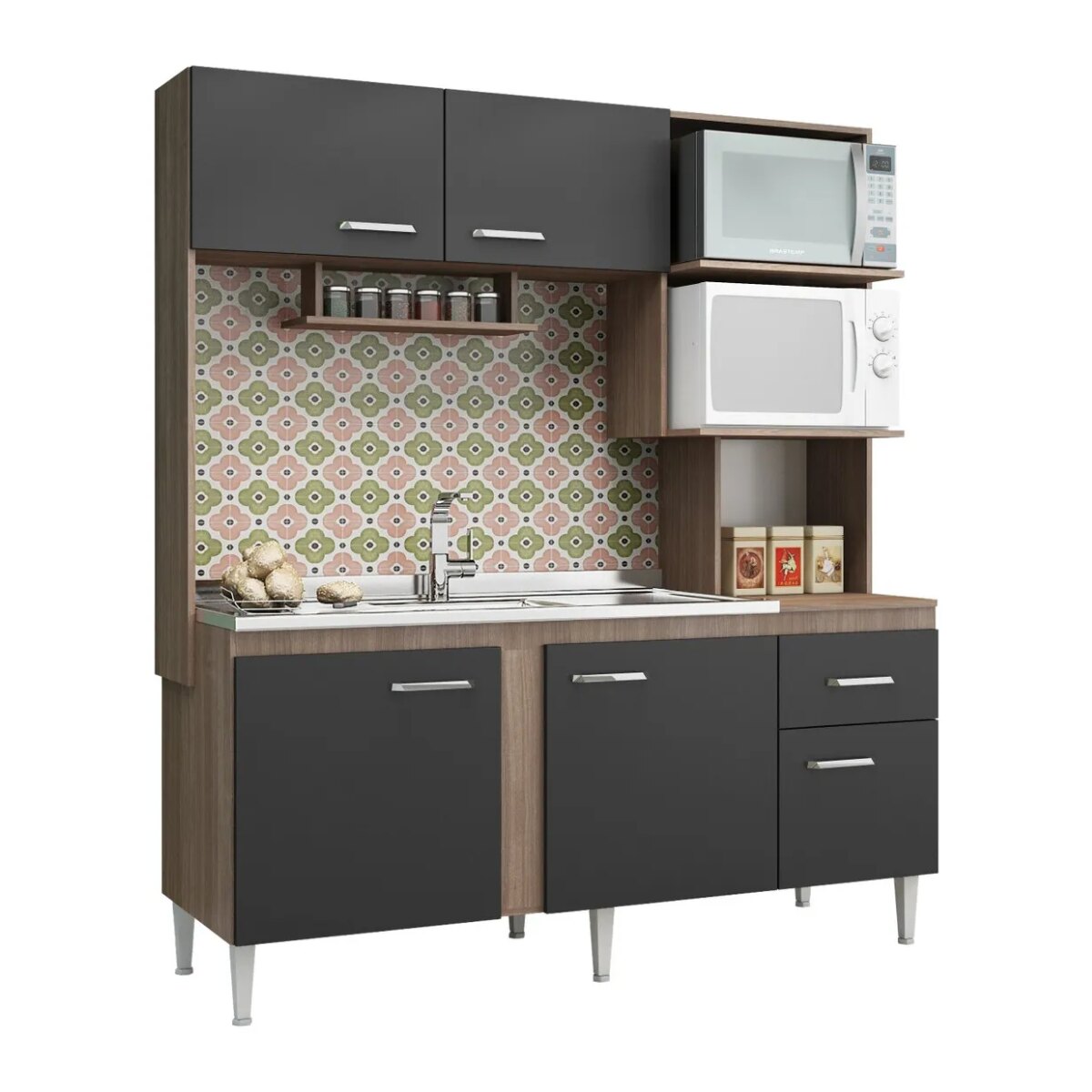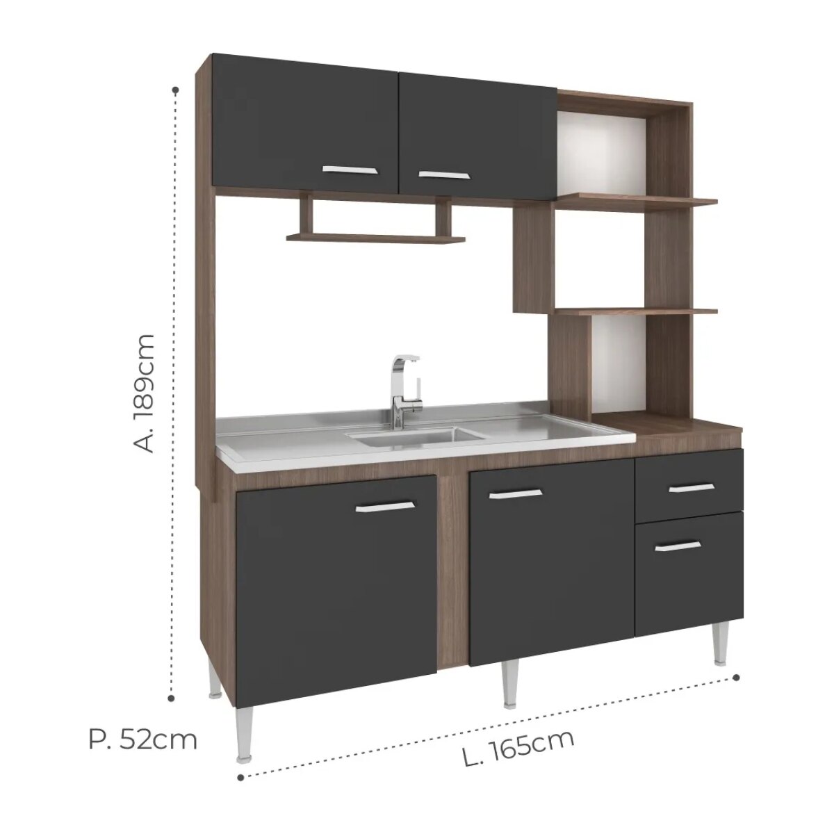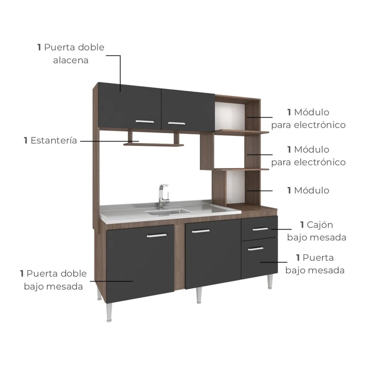 Organizá tu cocina con estilo moderno y excelente funcionalidad con la Cocina Modular Sevilla Grafito. Su combinación de color Teka con Grafito aporta elegancia y calidez, ideal para ambientes contemporáneos.