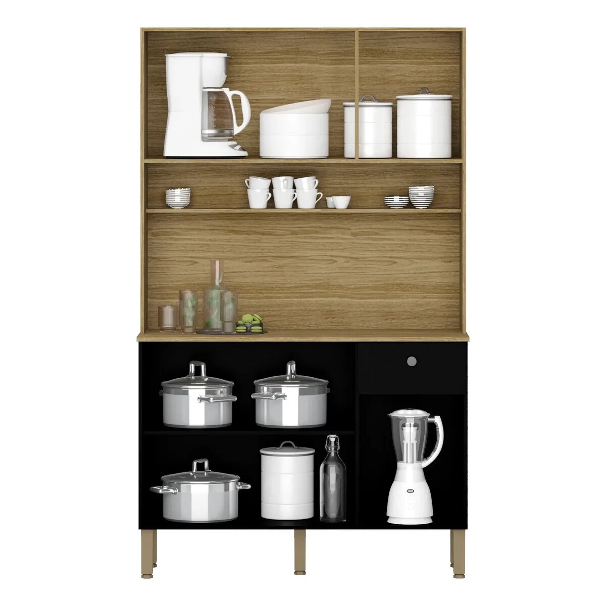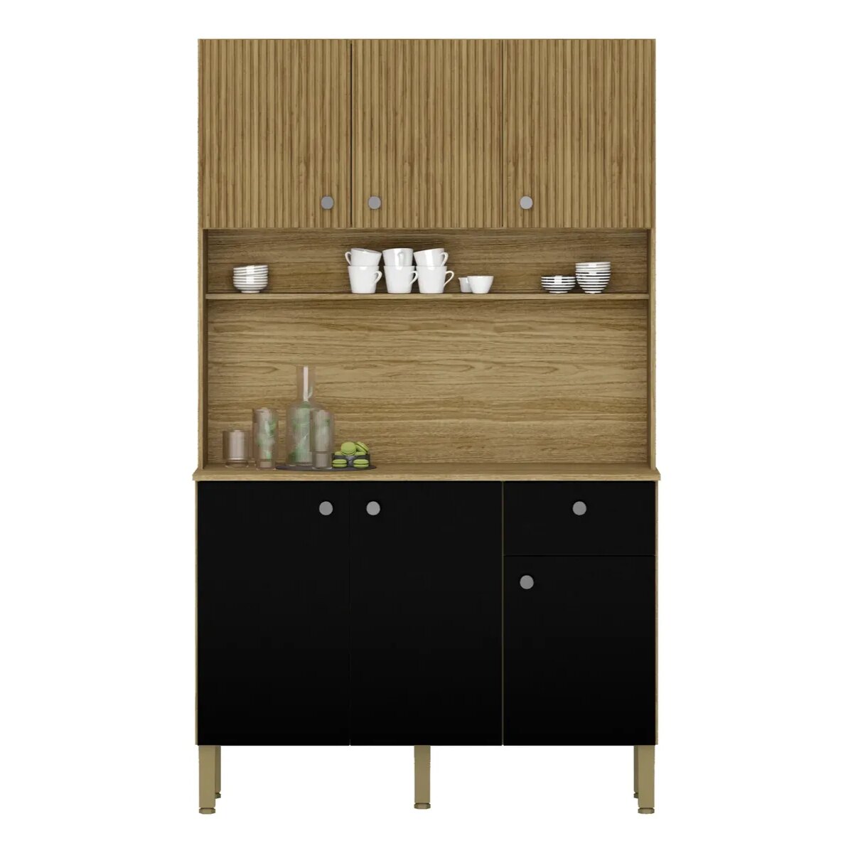 MUEBLE MODULAR DE COCINA STYLE 6 PUERTAS MARRÓN NEGRO CON CAJÓN Y NICHO