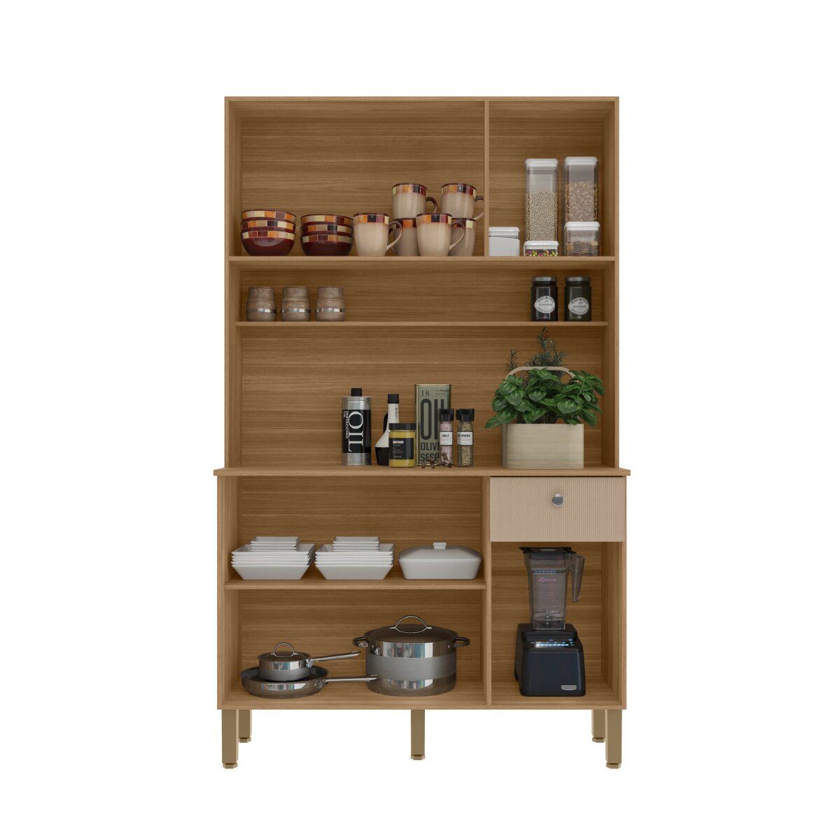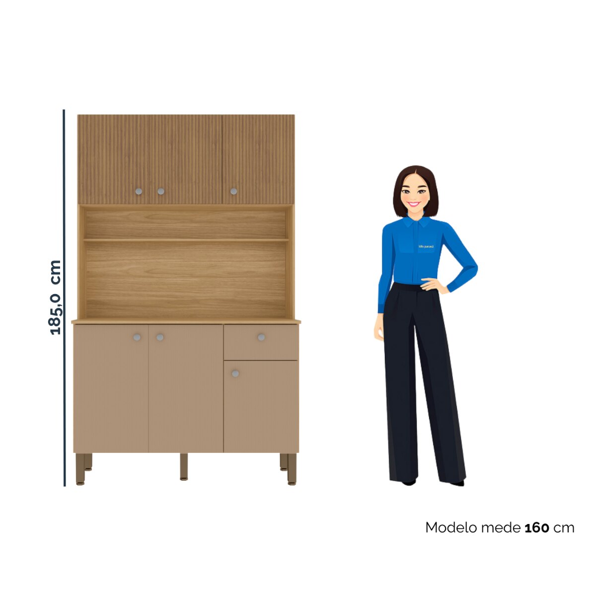 Diseñado para el uso diario, este kit ofrece múltiples compartimientos, puertas resistentes y un cajón con corredera telescópica que brinda una apertura suave y completa. Además, incorpora un nicho decorativo que suma versatilidad para ubicar utensilios, electrodomésticos o elementos decorativos.
