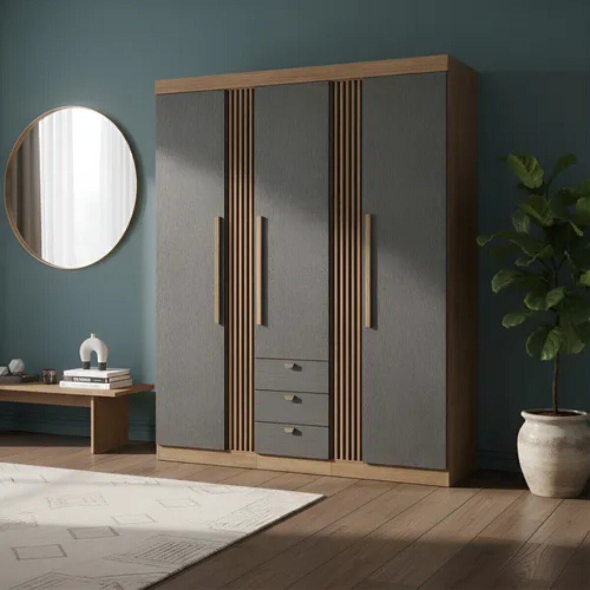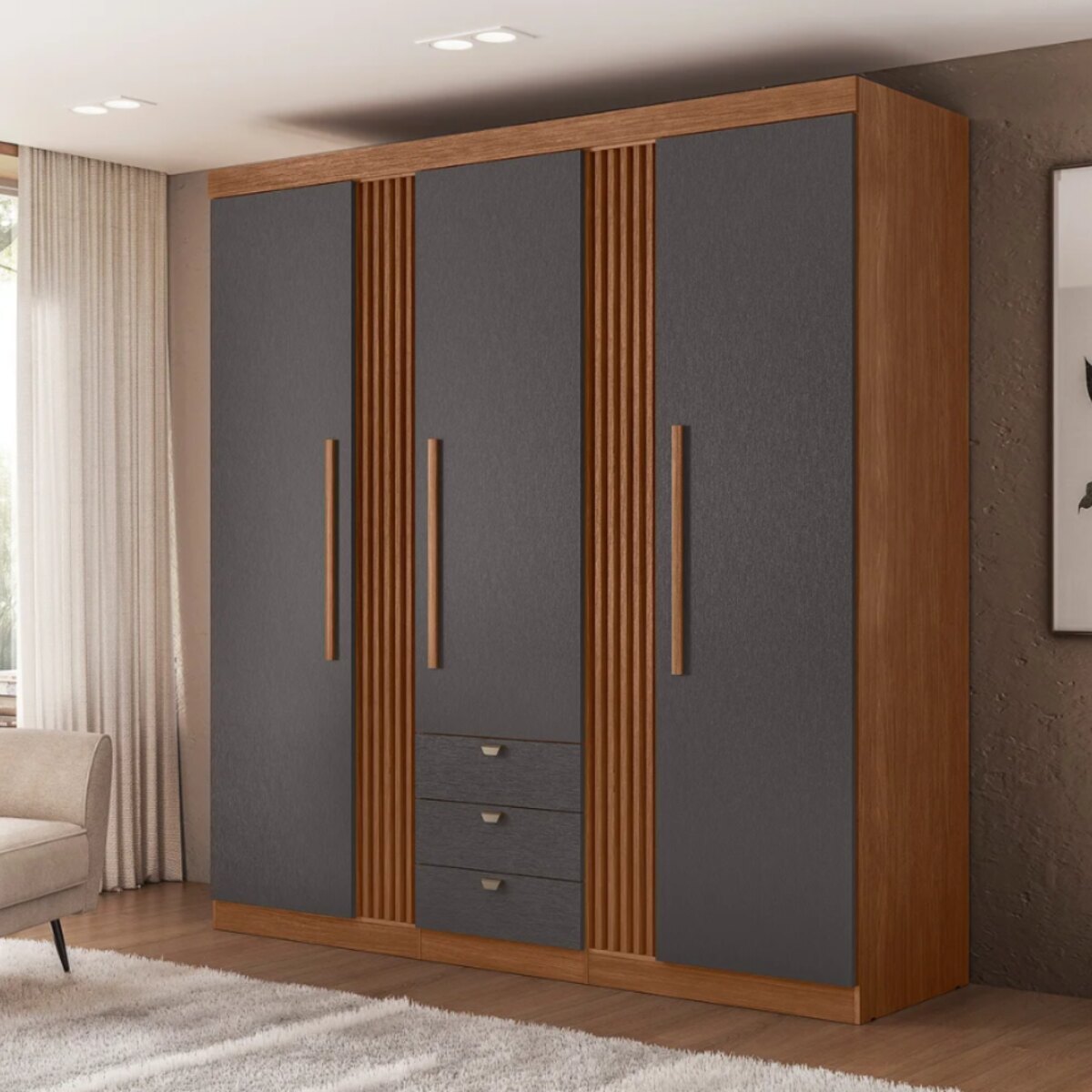 ROPERO AURORA 3 PUERTAS 3 CAJONES JATOBÁ - GRAFITO