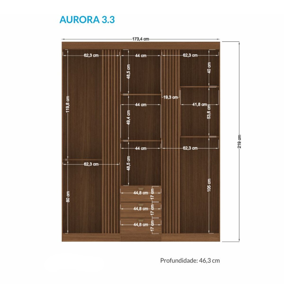 Si estás buscando un ropero amplio, moderno y funcional, el Aurora 3.3 es la opción ideal para organizar tu dormitorio con estilo. Su diseño elegante en tono Jatobá y Grafito aporta calidez y sofisticación, mientras que su interior está pensado para maximizar el espacio y la comodidad en el uso diario.