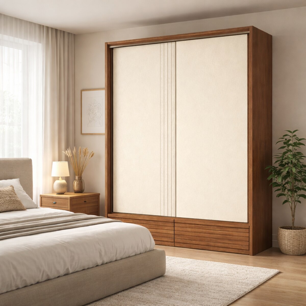 Renová tu dormitorio con el Placard Demócrata Corredizo, un mueble pensado para ofrecer gran capacidad de guardado, diseño moderno y máxima funcionalidad. Su combinación de color Jatobá Arena aporta calidez y elegancia, adaptándose perfectamente a dormitorios contemporáneos.